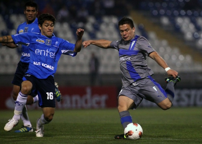 universidad_catolicas_alvaro_ramos_r_vies_for_the_ball_with_bloomings_victor_hugo_belmar 2015年12月19日 700 × 500 12/13 Club Blooming (H) FAIR PLAY BOLIVIA