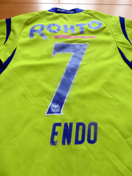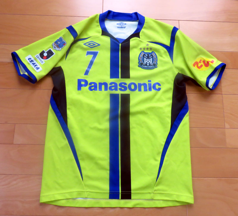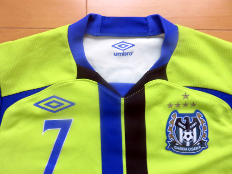 + JAPAN, Uniform, └─GAMBA OSAKA 2011 GAMBA OSAKA (3RD) 7 ENDO 20TH ANNIV. UMBRO Panasonic 2017年2月5日 kyorozo コメントする 蛍光イエローが斬新な20周年を記念して作られたガンバ大阪の3RDモデルの遠藤選手仕様です。 このイエローはサルファイエローというそうです。 ベース素材はウーブン素材を使用。 従来のユニホームに比べ20%軽量化されています。 右袖にガンバ大阪の優勝回数を示す5つの「V(ヴィクトリー)」をかたどった20周年の記念ワッペンつき 胸のエンブレムが高周波ワッペン 重圧感を持ちながらさらなる軽量化が図られています。 焼肉の「でん」