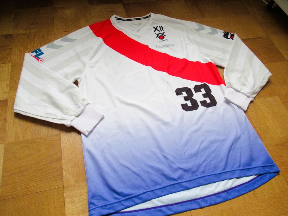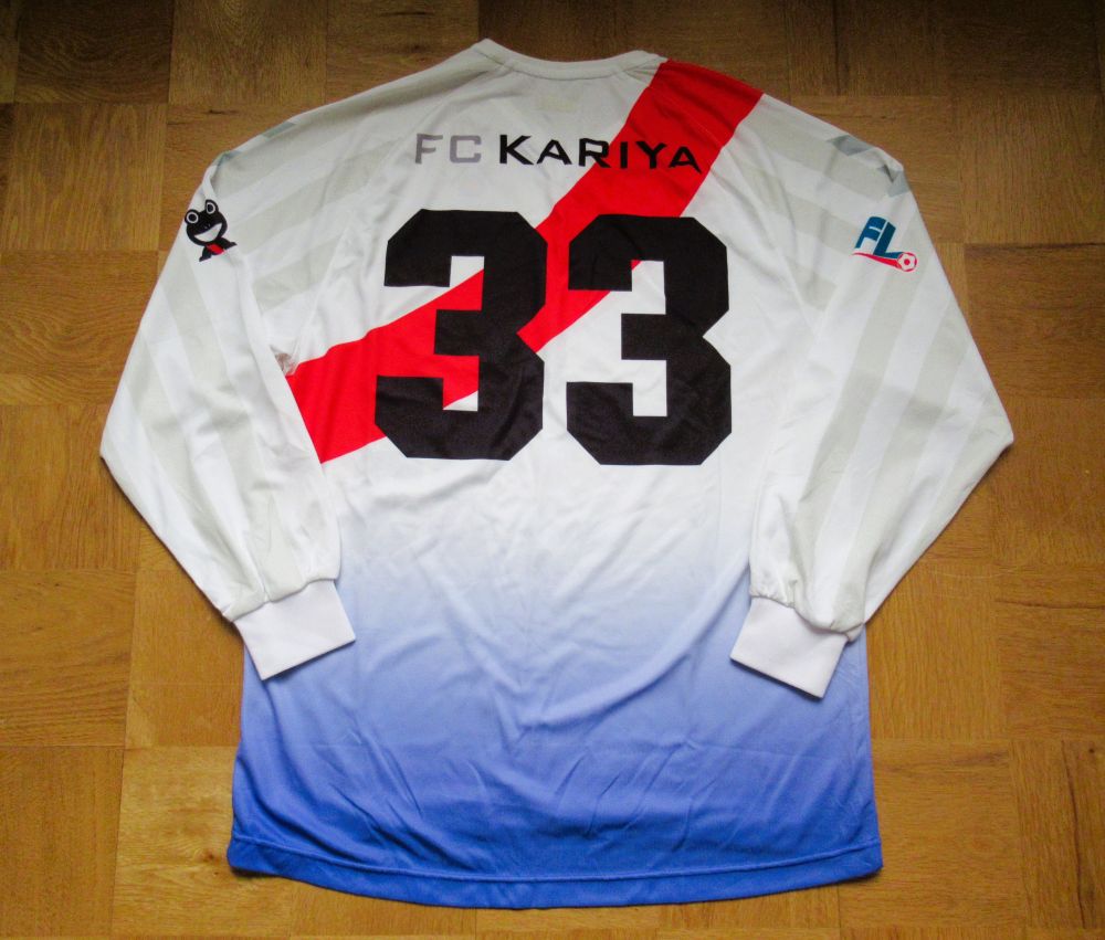 + Asia & Oceania, + JAPAN, Uniform, └─KARIYA 2006/2011 FC KARIYA (H) #33 Match Worn L/S 2026年2月1日 kyorozo コメントする FC刈谷のこの時代のユニフォームが好きで長袖もGETしました。こちらも選手支給品です。腰から裾にかけてのグラデーションがとても良いデザインで、当時試合中はシャツはパンツに入れないといけなかったので、もったいないなぁと思っていました。今ならとてもかっこ良くプレーヤーが見えるでしょうね! 33番の背番号にこだわりがあって、今回33ナンバーであったこともGETした理由の一つです。 袖の部分だけストライプになっているところもお洒落です。