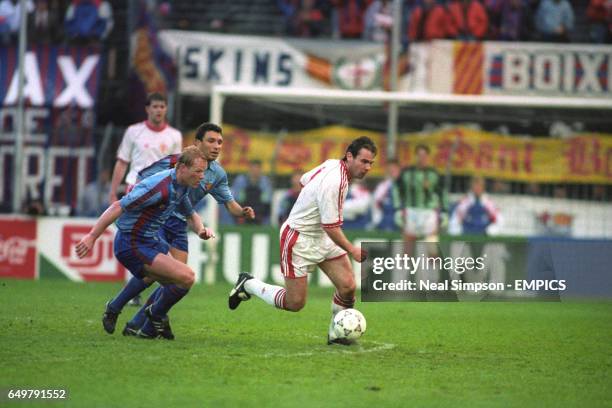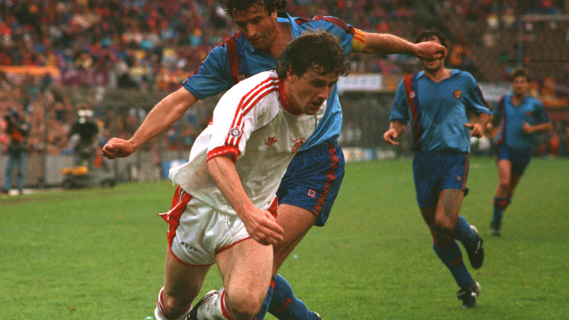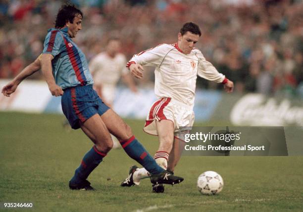 Barcelona’s Ronald Koeman (l) pursues Brian McClair, Manchester United, during the European Cup Winners Cup Final. (Photo by Neal Simpson/EMPICS via Getty Images)